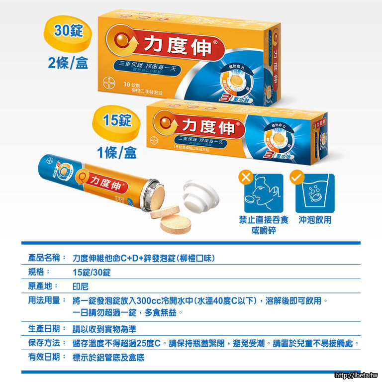 力度伸維他命C+D+鋅發泡錠(30錠/盒) 柳橙口味