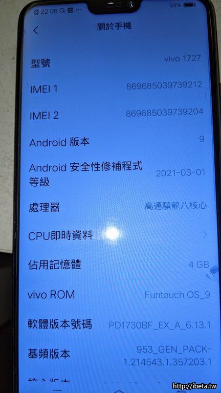 vivo V9 Youth(1727) 4GB/32GB 1600萬畫素 8核心 6.3吋