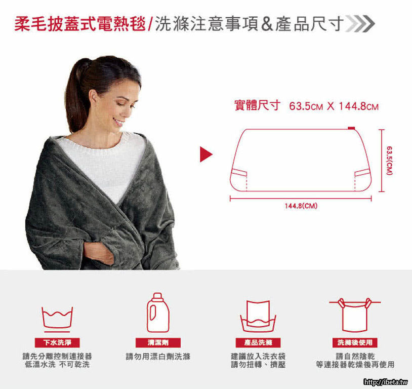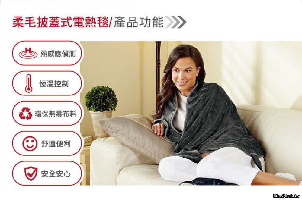 [p=25, null, left]美國 Sunbeam 柔毛披蓋式電熱毯/熱敷墊(氣質灰)[/p]