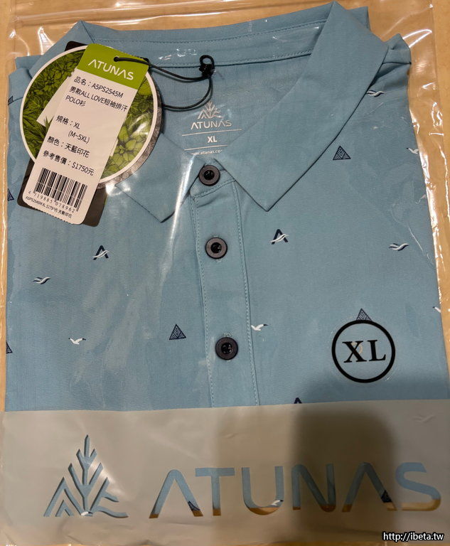 歐都納ATUNAS-TEX男排汗透氣短袖POLO衫,顏色:漸層藍,尺寸XL,全新未拆。