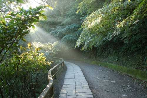 當時空氣清新, 晨曦穿越樹梢, 灑映在步道上, 真是三峽好所在~