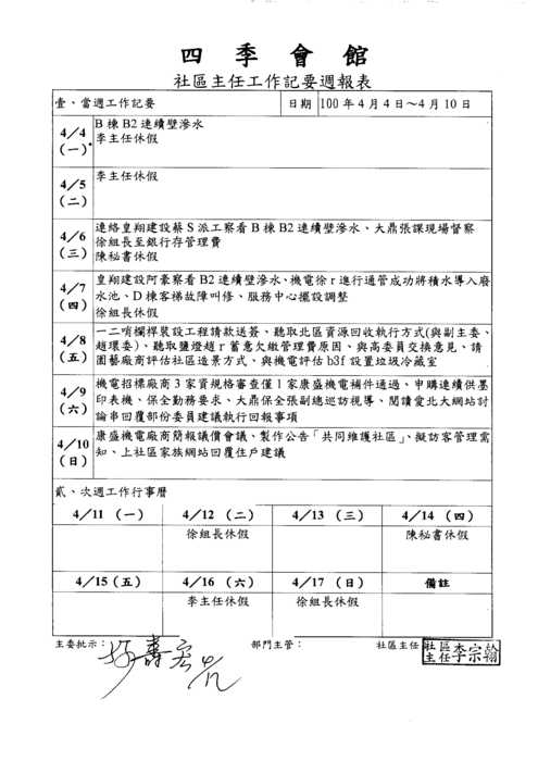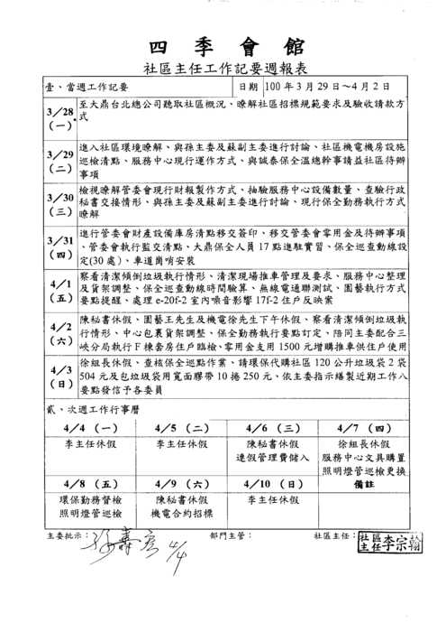 四季會館社區主任0328-0417工作週報