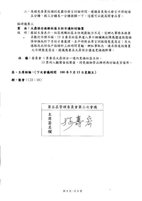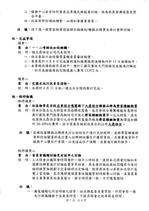 物管交接的陣痛期還沒過,此時更換主任的提案對於社區不見得是好事~