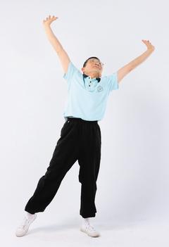 4.掌心向前,手指擺動向外伸出後,再做出「無法擋」的動作意象;下肢利用膝蓋力量,讓身體左右平轉。