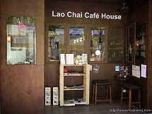 「Lao Chai Café House」小巧的門口木製架子上除了擺放菜單外,還有許多的明信片及活動訊息,充滿了人文氣息。話說正在外面殺底片的我們,一不小心就被老闆娘親切的招呼進去啦!