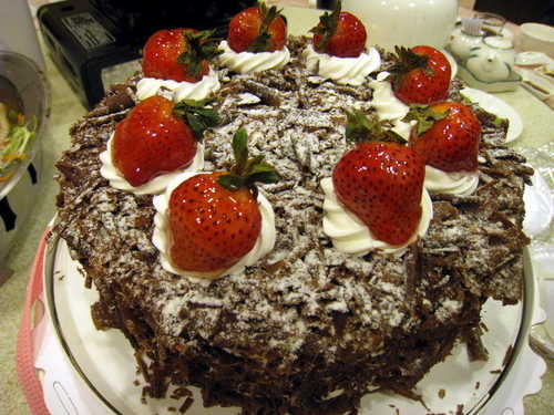 雖然很飽,當我拿出在邦朵麵包訂的黑森林時,每個人都說哇!!!