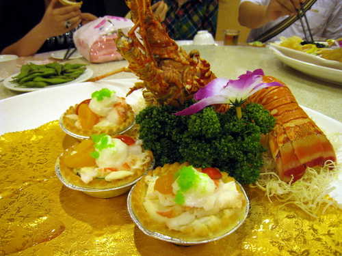 姐姐訂了在交流道附近的海霸船餐廳,我們選一桌六千塊的菜,