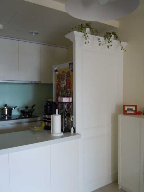 (建商是設計放冰箱, 但放了冰箱, 就會讓冰箱後面見客, 本想做一個四折門, 開放式廚房可以隨時密閉,