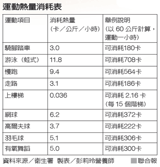3.一般建議運動強度是運動後心跳達到最大心跳數的60至80%(最大心跳數=220-你的年齡)。