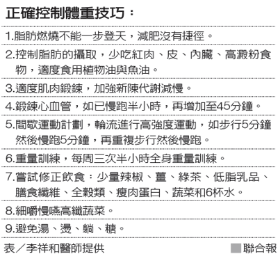 減肥是長期的身體改造計畫,必須要有耐心地改變生活習慣,比方飲食、運動、作息與心理狀況,認真穩紮穩打,建立好習慣,才能有效減肥不復胖。