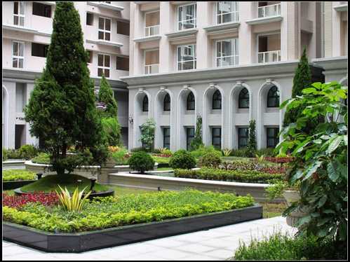當大樹長得又高又茂密時是否會擋住視線 ? 颱風來時是否會破坯低中樓層的玻璃門窗 ? 有火警時是否會影響救災的視線 及水柱無法對準目標 ? 所以我也覺得種在中庭比較好!