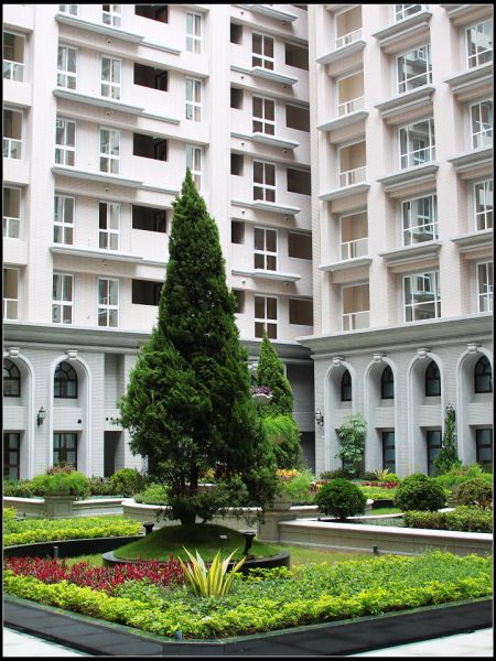 其實庭園這樣做蠻好的, 整理庭園花費是非常大的, 樹長得茂盛葉子掉了若不整理會很亂, 松樹反而好, 長青不需怎麼照顧都會長的不錯, 到了聖誕節可以裝飾起來很棒哦! 大人, 小朋友一定會喜歡的, 到時可以在中庭開派對, 燈光一打下去有如高級酒店般, 多幸福! 希望大家多往好的去想, 創造一個舒適的家園給愛悅的居民