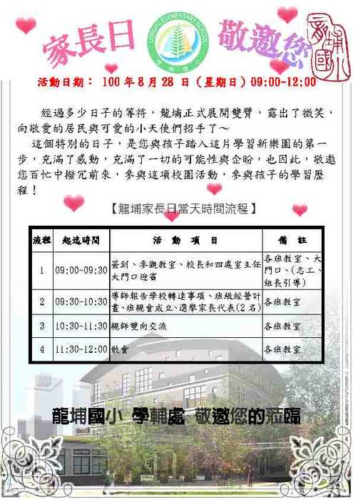龍埔國小報到區(內有新生名單及家長日邀請函)