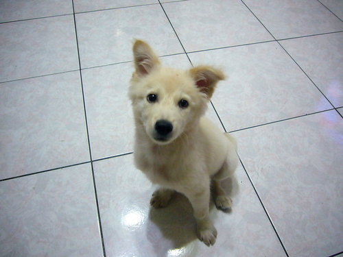 話說小拉拉是兩個月大時來我家報到 今天剛好滿兩週 之前我都還擔心他是不是"智商"有點問題 因為這兩週來 他對我教的基本指令完全不理采就算了 他對他的名字竟然也沒啥反應 老公開玩笑說他會不會是智障或者是耳聾?