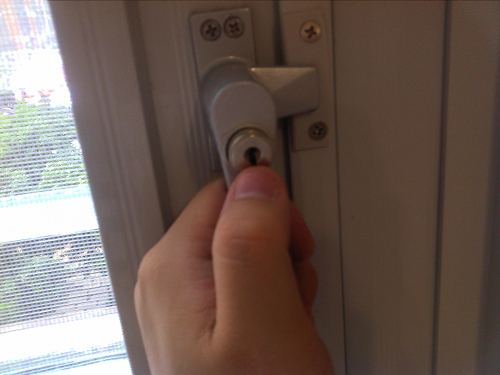 左右開窗,因為防盗及怕小朋友的情況,所以必需要開這一種安全鎖來用,但是也不是很好用!