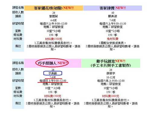暑假期間(7~9月)讓大人或學童充實自我才藝的優質活動課程...巧手捏麵人...學費有補助喔~