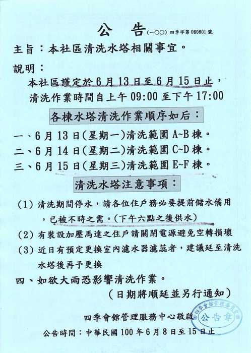 一早就沒水 應是沒先把頂樓/中繼水塔 水未先打至滿水位就先關閉水閥門了.....{:4_119:}