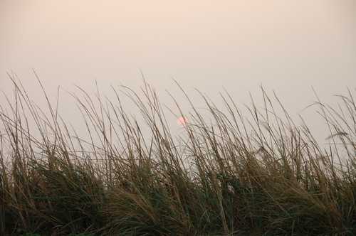 路過芒草時剛好拍下落日的情況。