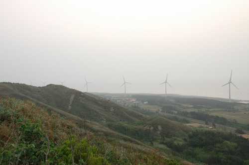 記得幾年前到內蒙古一遊的時候,在蒙古高原上面看到數百座的風力發電機組,那可是很壯觀的。雖然台灣海邊矗立的發電機組沒有那麼多,但是排排站也是蔚為奇觀。