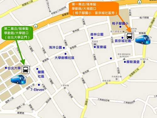 搭乘遊覽車集合地點位置示意圖