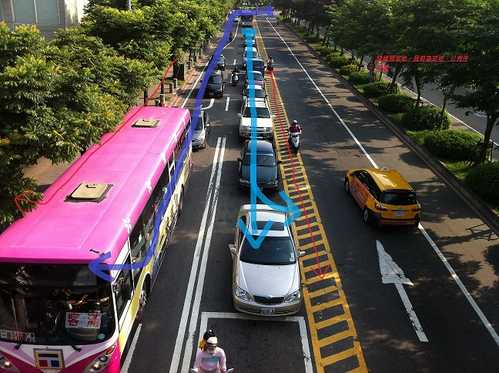 現在這種限時段管制我覺得也不夠 畢竟那條路大型車輛作那樣的轉彎(幾乎是迴轉了= =)是非常危險而且對他們來說有很大