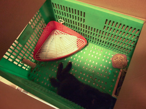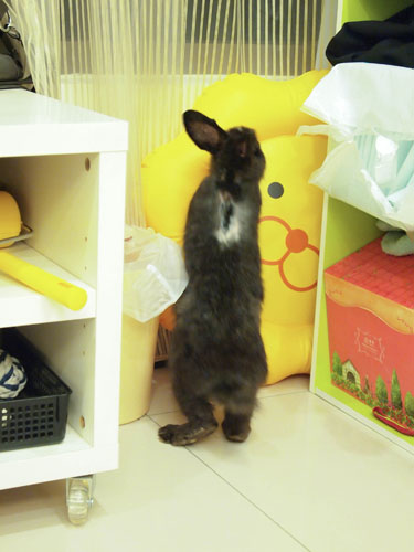 我把牠接回家 牠馬上就適應環境 後腿伸的好長好長(人家說這是兔子放鬆的樣子)