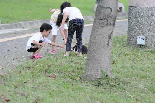 今天帶狗狗去北大的草地上放風,突然間...
