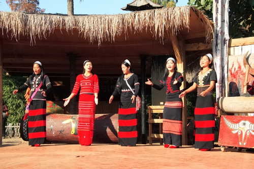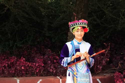 布朗族的姑娘在唱著族裡的民俗歌曲呢