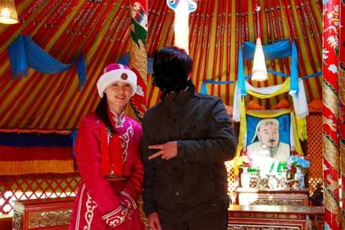 我同事和蒙古姑娘的合照,基於隱私,將當事人的臉部塗黑!