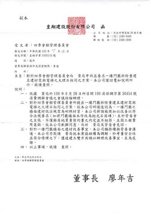 經7/12臨時會議決議,責由委員會成立6人小組於7/23與皇翔協商