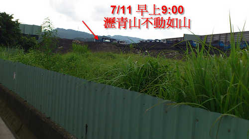 目前煙囪只是拆的3/1 的部分(拆下來的煙囪放旁邊,看來隨時有要架上去的可能). 今天原本認為會持續拆除剩下部分, 瀝青廠拆除動作又停了. 不知道再玩甚麼把戲. (目前是停止生產的狀況), 我們會持續觀察瀝青廠拆除進度,也請人去告知地主,如果瀝青山沒有清除,政府可是會連續開罰地主,直到恢復原狀,讓地主去對瀝青廠施壓.