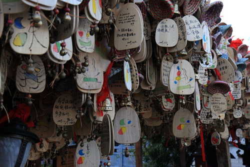 架子上吊滿了祈福的牌子,希望大家都能平安幸福,有求必應...