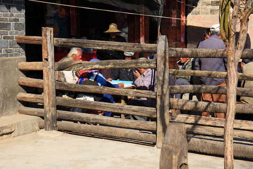 老人家聚集在自家院子玩起了中國國粹--麻將..