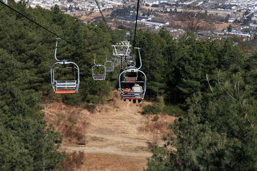 第一次做這種開放式的纜車,心裡還有點毛毛的,腳不著地沒有踏實的感覺!