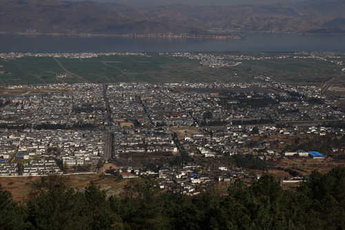 從蒼山可以眺望到整個大理,遠方介於山和陸地之間的藍色湖泊就是著名的洱海!