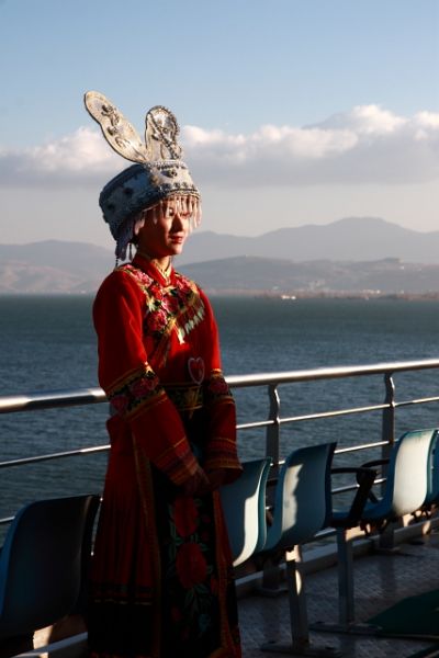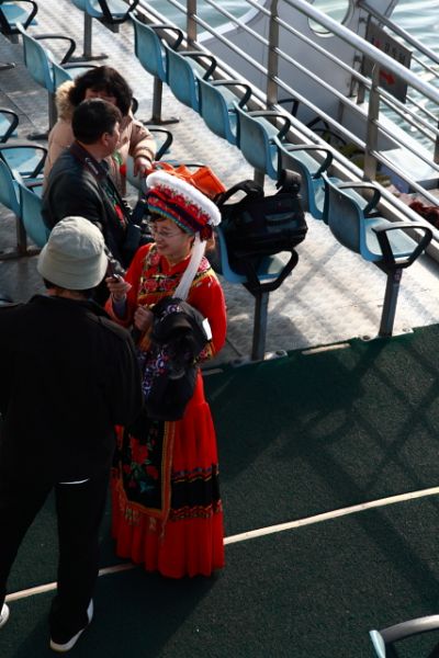 同船旅客,穿著白族衣裳,正在拍著美美的照片呢!