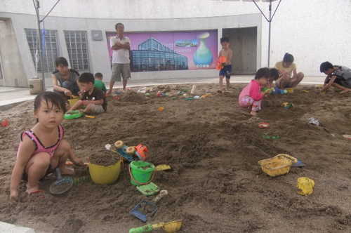 週六早上起的晚,到陶博館已經中午,但孩子們一看到乾淨的沙坑就破不及待的跳進去挖了起來,這天天氣特別好,涼爽不熱,還有微風,七月能有這樣美好的天候,簡直就是太奢侈,記得上次來陶博館時艷陽高照,熱的我直冒汗,還一絲絲風都沒有,所以這種微涼天氣最適合進行戶外活動了!