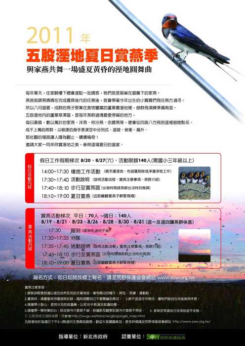 報名請至荒野網站-夏日賞燕活動專區,需先註冊登錄為荒野之友唷!
