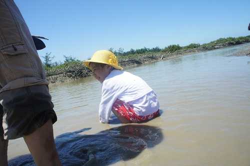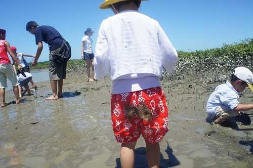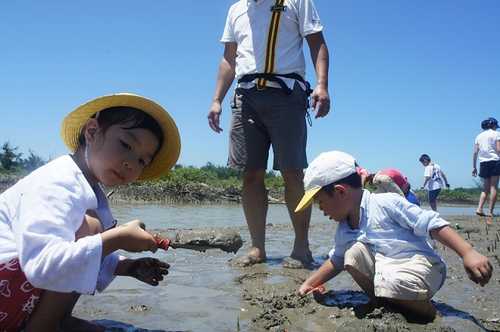坐船看蚵仔,遊潮間帶-->參觀海鮮加工廠,體驗瞬間結冰的滋味-->虱目魚全餐料理(直接在漁塭中用餐)-->鹽山繼續曝晒-->東石漁人碼頭陽光殺菌玩水-->回家烤肉大餐
