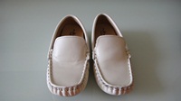 4.手工豆豆鞋,白色適合夏天穿,純牛皮的,小女只穿2次,底幾乎無髒汙,因只在車上及逛百貨穿過;適合大班到2年級左右,訂做(台灣)的,尺寸忘了