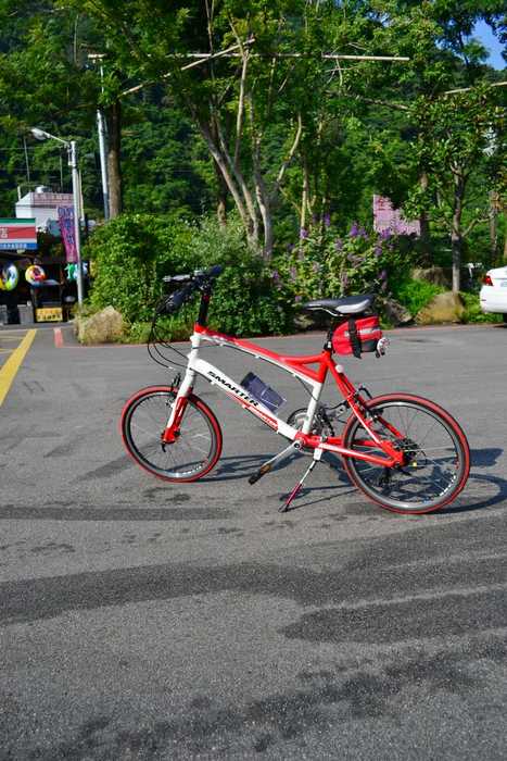 我的折疊車只有六段變速, 爬太斜的坡可能有困難, 會踩不下去ㄚ....