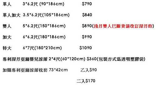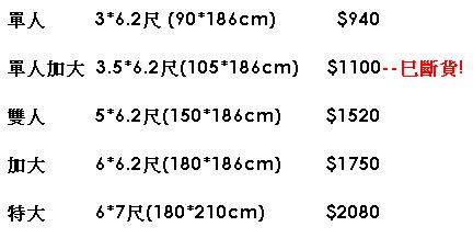 [單人加大版 3.5呎*6.2呎 NTD.840 x 1(深月)] +1
