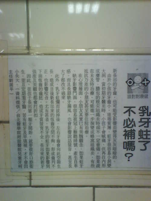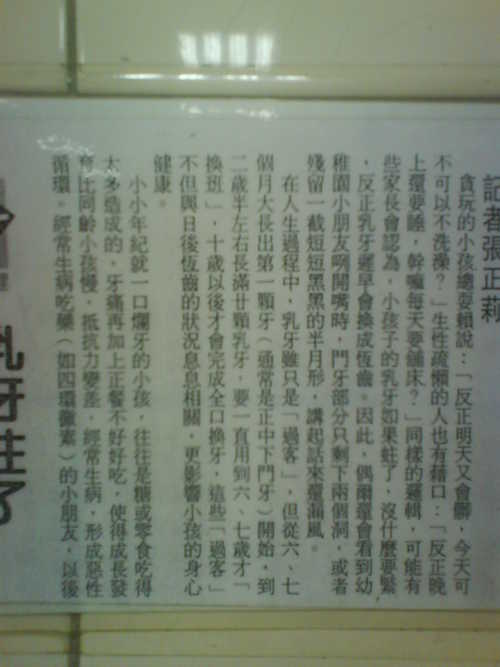 各位媽媽好, 這篇文章是我去看牙醫的時候看到她們張貼的, 所以隨手用手機拍了下來, 因為我姊的女兒小一就一口爛牙, 她之前的習慣都是睡前喝牛奶然後直接睡覺, 沒有刷牙也不愛刷牙, 因為在鄉下給老人家帶, 老人家也不知道要注意這些, 所以可憐的妹妹門牙都蛀掉了, 還有近視哩, 有時候我覺得老人家看孫子享天倫之樂是人之常情, 但是如果她們只懂溺愛還打著[寵孫是理所當然]的旗幟, 我就沒法苟同了, 因為這樣的行為根本不是[愛], 別把[愛]用濫了 {:4_136:}