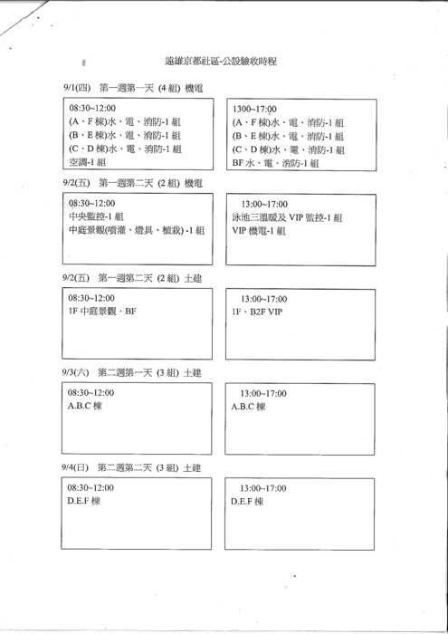 前各項公設缺失修復前,即辦理公設驗收及點交事宜。