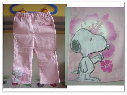 ★Snoopy粉紅色薄長褲(腰寬23,褲長50,褲檔21,臀寬29, 鬆緊帶,後面有兩個真的小口袋,只穿過一次!)--150元