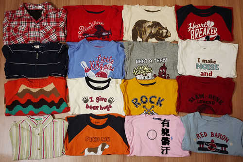 大部分常穿的牌子為GAP/GYMBOREE,還有些ZARA/OKAIDI歐洲品牌是去英法掃回來的戰利品。