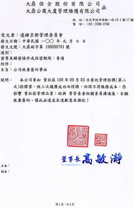 上一次物管招標, 不知為什麼流標了? 也不見委員們說明原委?