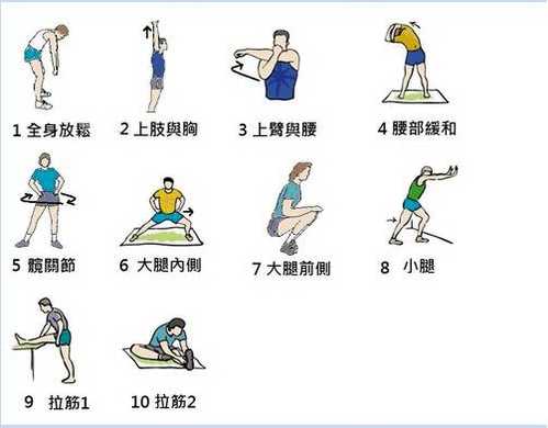 配合5~10分鐘的緩和運動, 來減緩肌肉的疲勞, 讓往後的幾個小時或