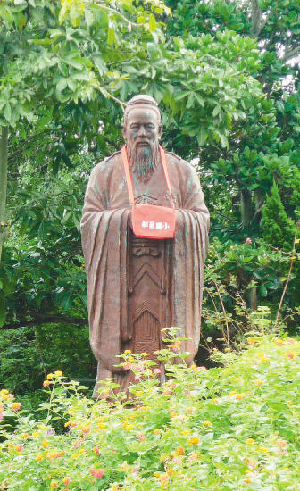 「歡迎孔子加入都蘭家族!」昨天教師節,台東都蘭國小舉辦孔子銅像揭幕典禮,全校師生將紅遍全國的都蘭小書包掛在孔子脖子上,表情嚴肅的孔子親和力大增,學校表示,史書記載孔子很幽默,為孔子變裝,相信孔子不會生氣。