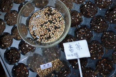 香菜的種子很香,要泡水、輕輕槌開,較易發芽